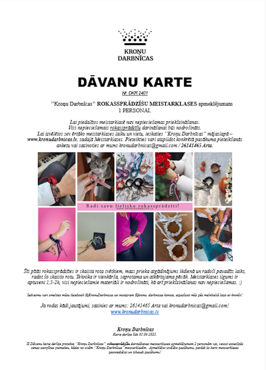 Elektroniska Dāvanu Karte rokassprādzīšu darināšanas meistarklases apmeklējumam (PDF fails)